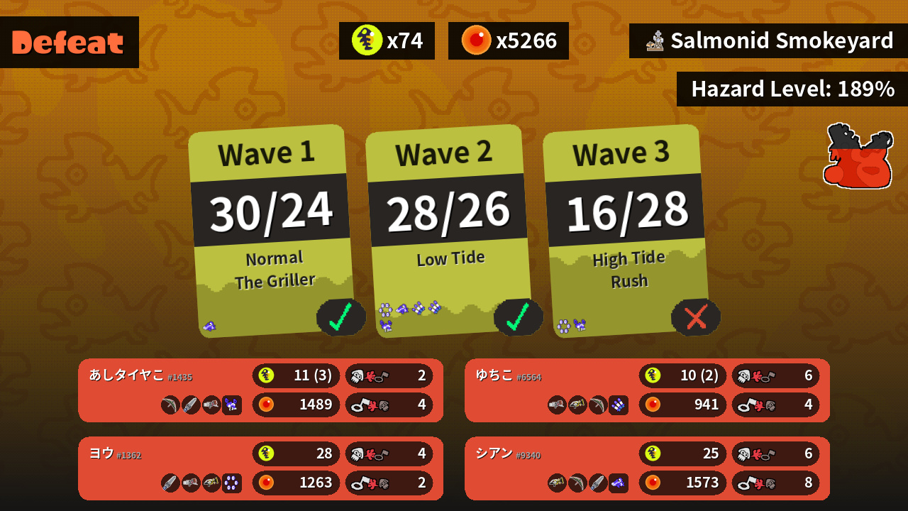 | Boss Salmonid | 11 | 8 | 13 | 7 |