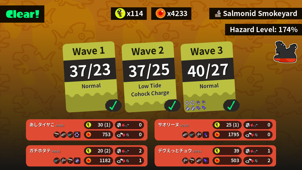 | Boss Salmonid | 16 | 8 | 11 | 19 |