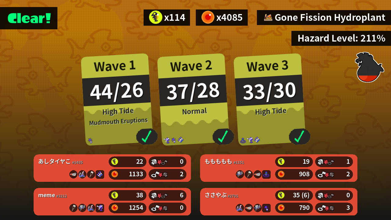 | Boss Salmonid | 16 | 15 | 7 | 9 |