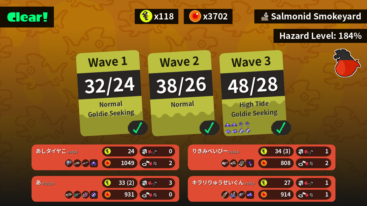 | Weapons | Clash Blaster Grizzco Charger Splat Charger | Heavy Splatling Grizzco Blaster Splat Dualies | Splattershot Nova Jet Squelcher Dapple Dualies | Grizzco Splatana Slosher H-3 Nozzlenose |