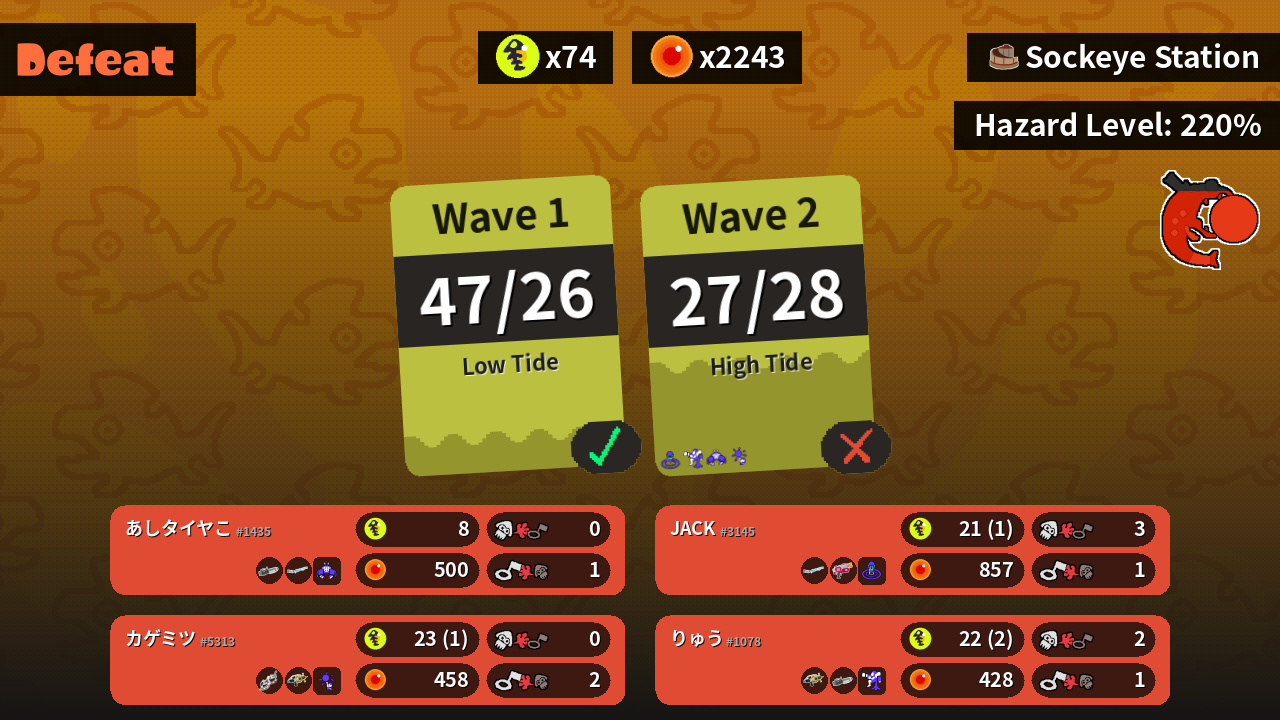 | Weapons | Ballpoint Splatling Classic Squiffer | Dark Tetra Dualies Splash-o-matic | Splash-o-matic Ballpoint Splatling | Classic Squiffer Rapid Blaster |