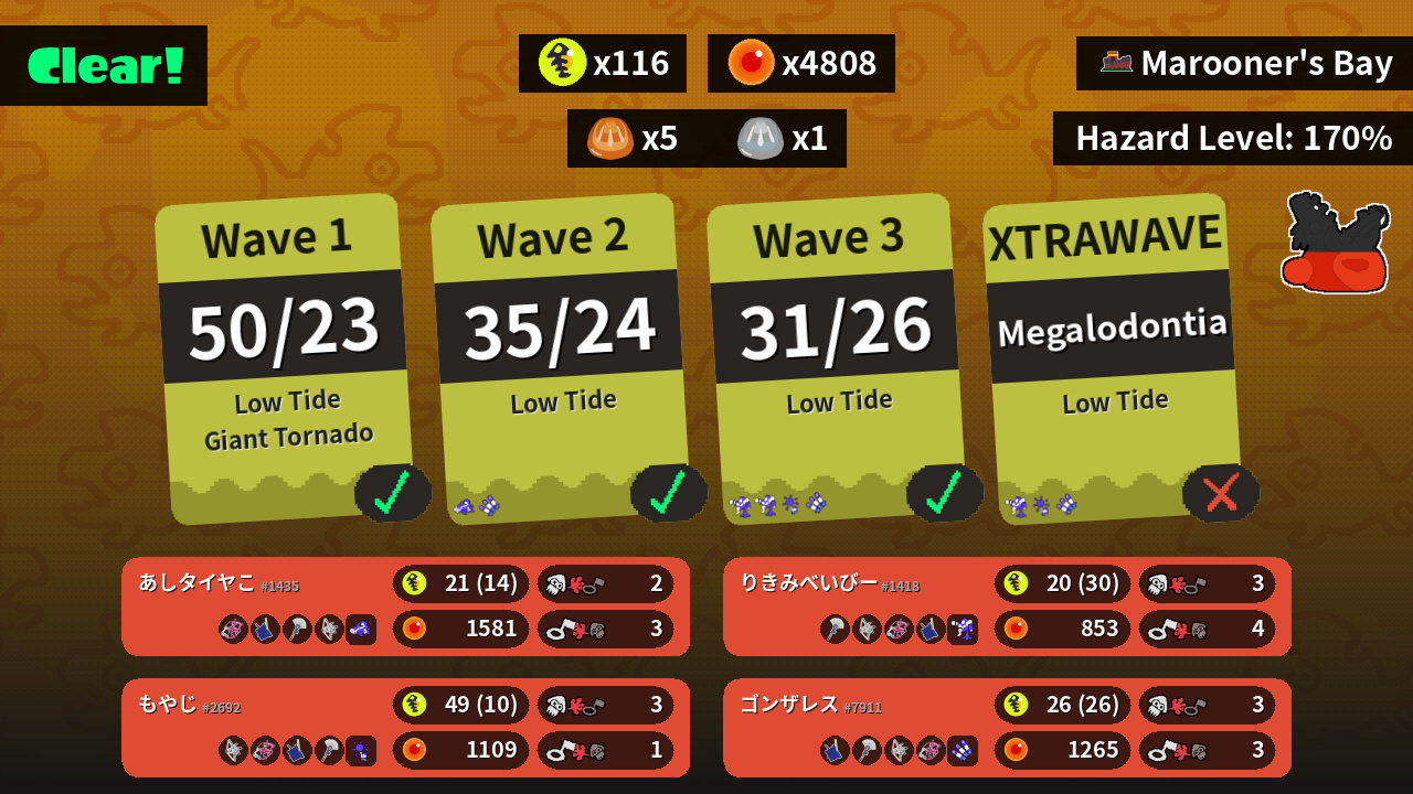 | Weapons | Dapple Dualies Tri-Slosher Painbrush Tri-Stringer | Tri-Stringer Dapple Dualies Tri-Slosher Painbrush | Tri-Slosher Painbrush Tri-Stringer Dapple Dualies | Painbrush Tri-Stringer Dapple Dualies Tri-Slosher |