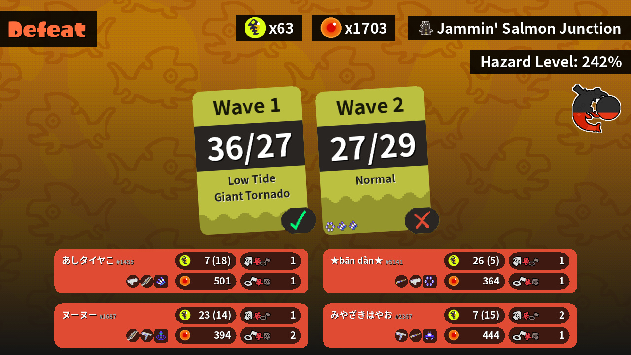 | Weapons | Splattershot Jr. Splatana Wiper | Splat Charger Splattershot Jr. | Splatana Wiper Big Swig Roller | Big Swig Roller Splat Charger |