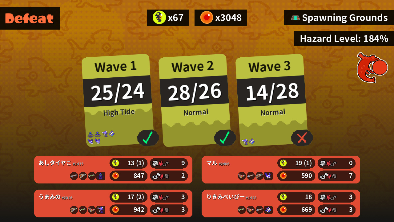 | Weapons | Snipewriter 5H Squeezer Bamboozler 14 Mk I | Hydra Splatling Snipewriter 5H Squeezer | Bamboozler 14 Mk I Hydra Splatling Snipewriter 5H | Squeezer Bamboozler 14 Mk I Hydra Splatling |