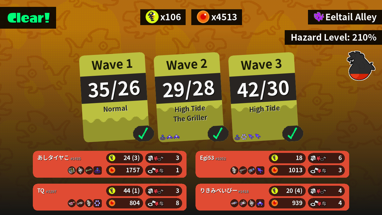 | Weapons | Grizzco Slosher Tri-Stringer Bamboozler 14 Mk I | Rapid Blaster Pro Grizzco Charger Grizzco Stringer | Splattershot Pro .52 Gal Tri-Stringer | Grizzco Stringer N-ZAP '85 L-3 Nozzlenose |