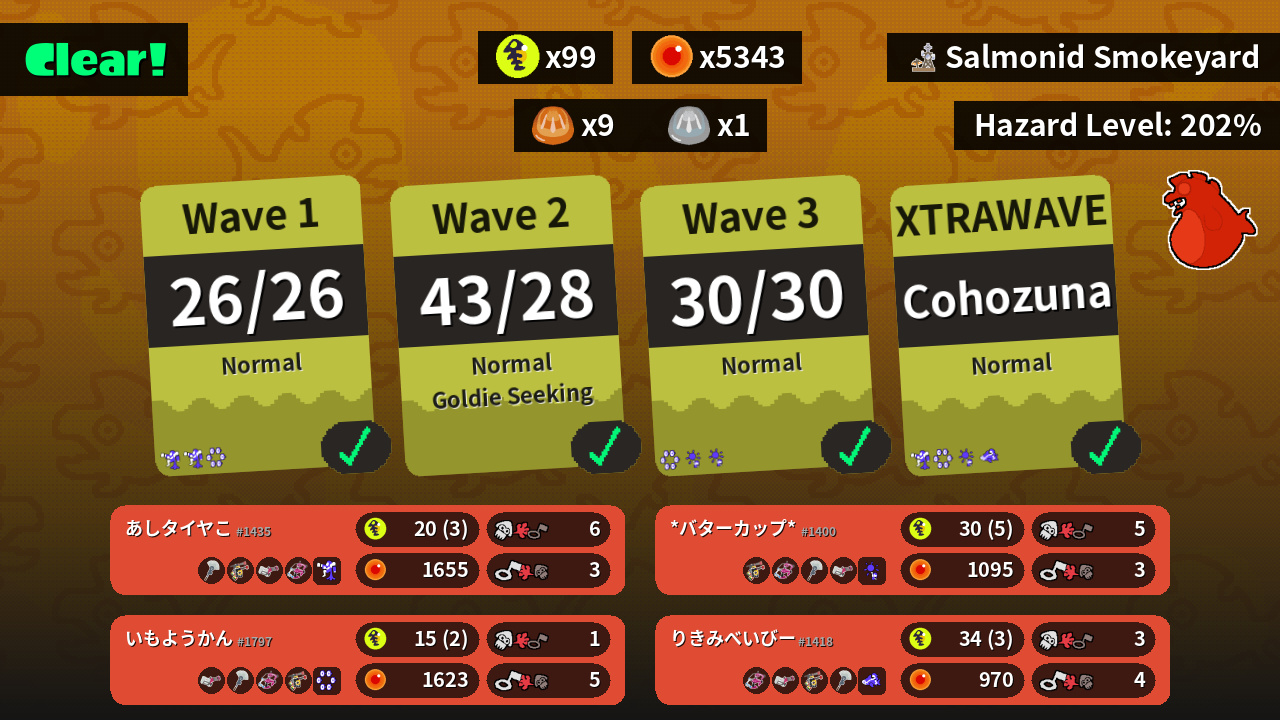 | Boss Salmonid | 14 | 20 | 11 | 8 |