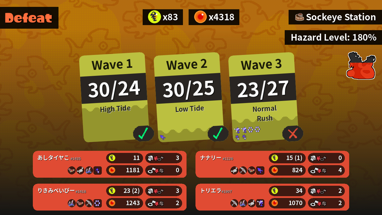 | Boss Salmonid | 16 | 9 | 15 | 4 |