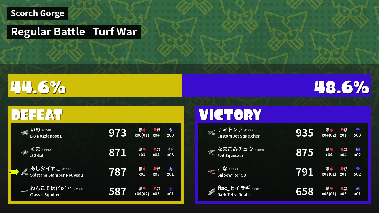 | Medals | #1 Home-Base Inker #1 Enemy-Base Inker #1 Crab Tank User | ||