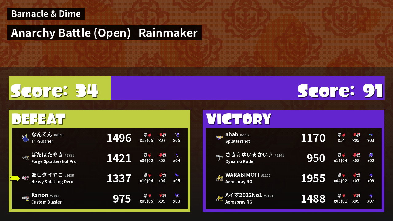 | Mode | Rainmaker - Anarchy Battle (Open) | ||