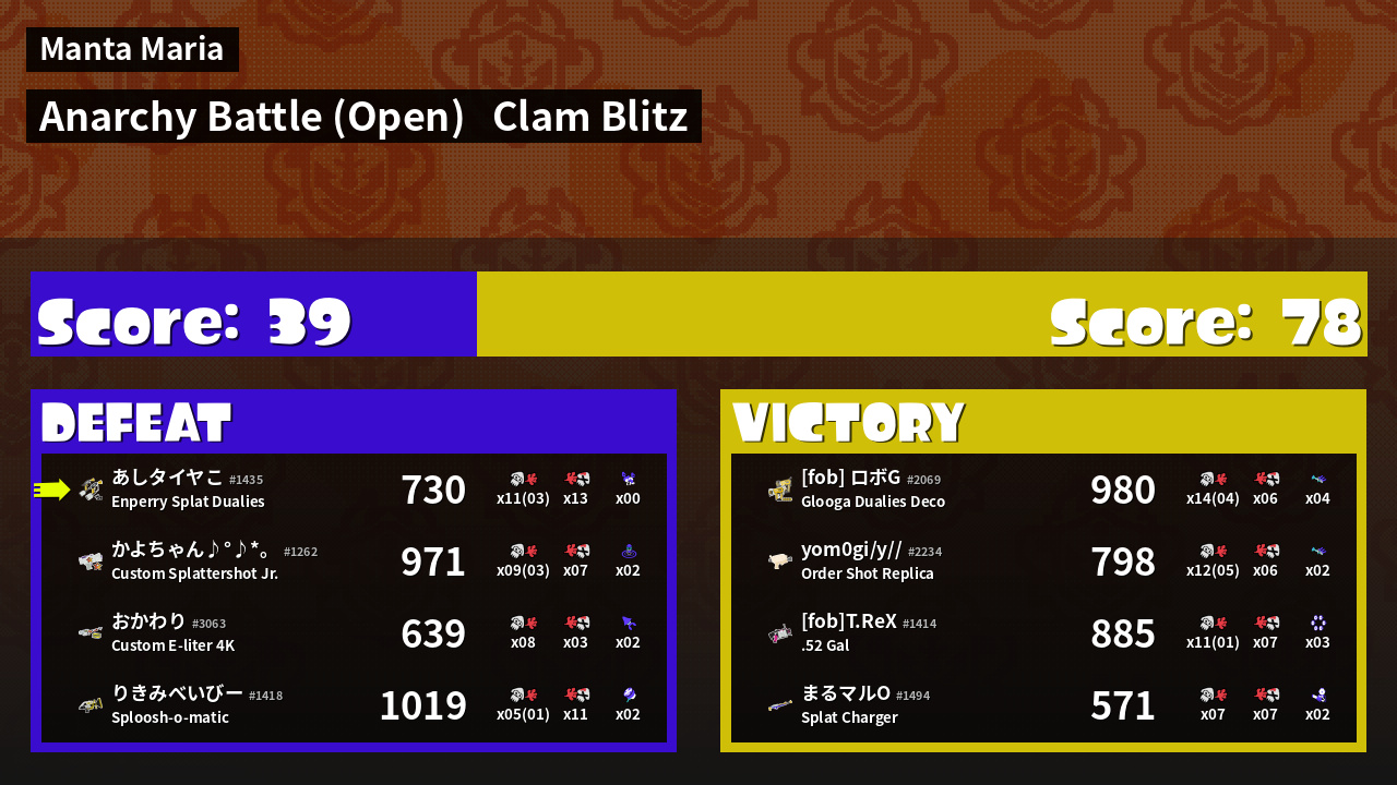 | Mode | Clam Blitz - Anarchy Battle (Open) | ||
