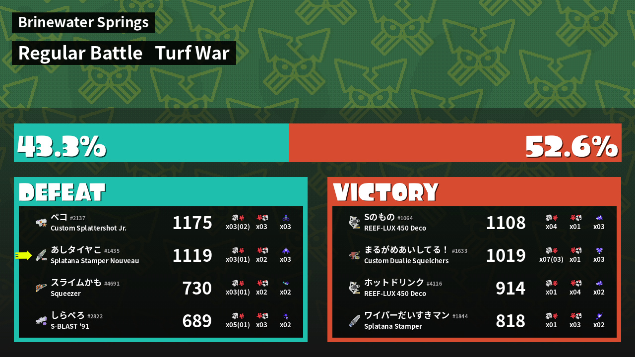 | Weapon | Splatana Stamper Nouveau ( Toxic Mist / Crab Tank) | ||