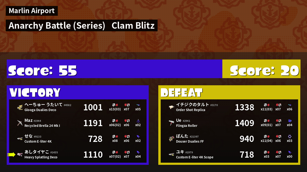 | Mode | Clam Blitz - Anarchy Battle (Series) | ||