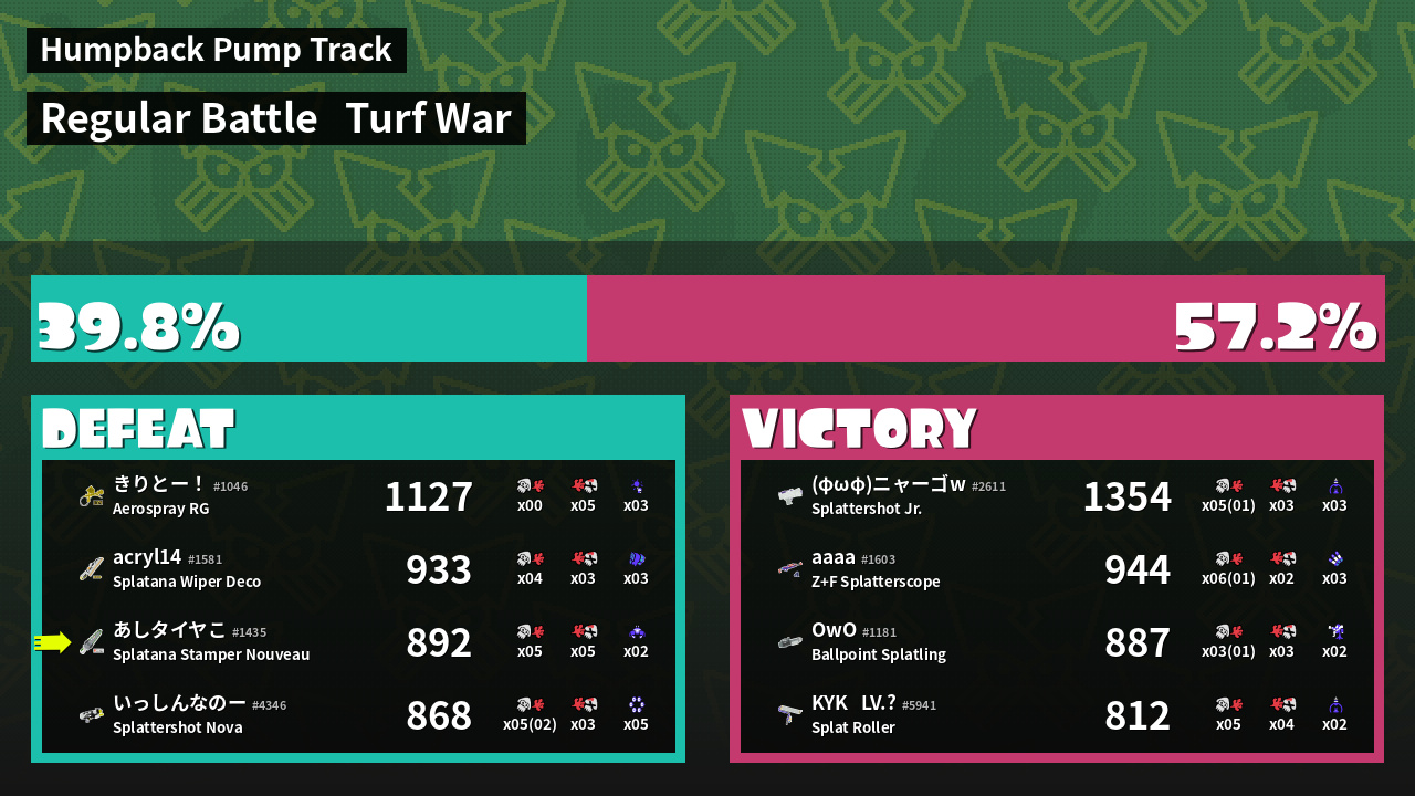 | Weapon | Splatana Stamper Nouveau ( Toxic Mist / Crab Tank) | ||