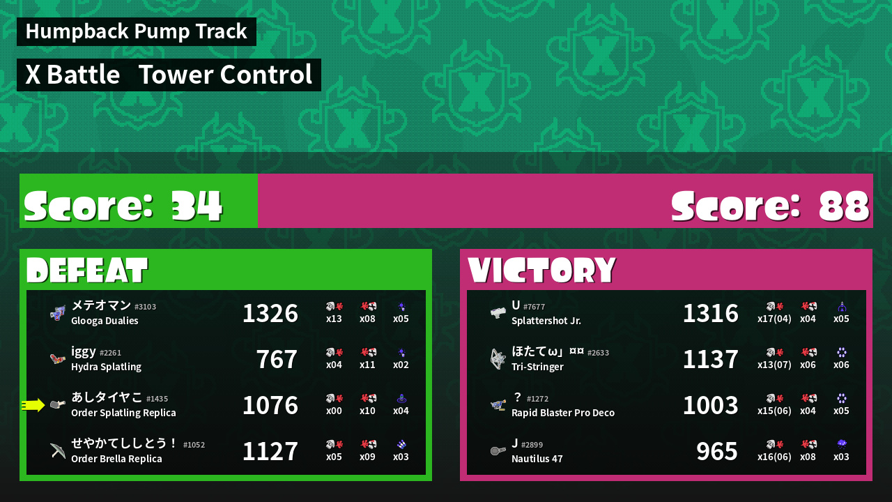 | Mode | Tower Control - X Battle | ||