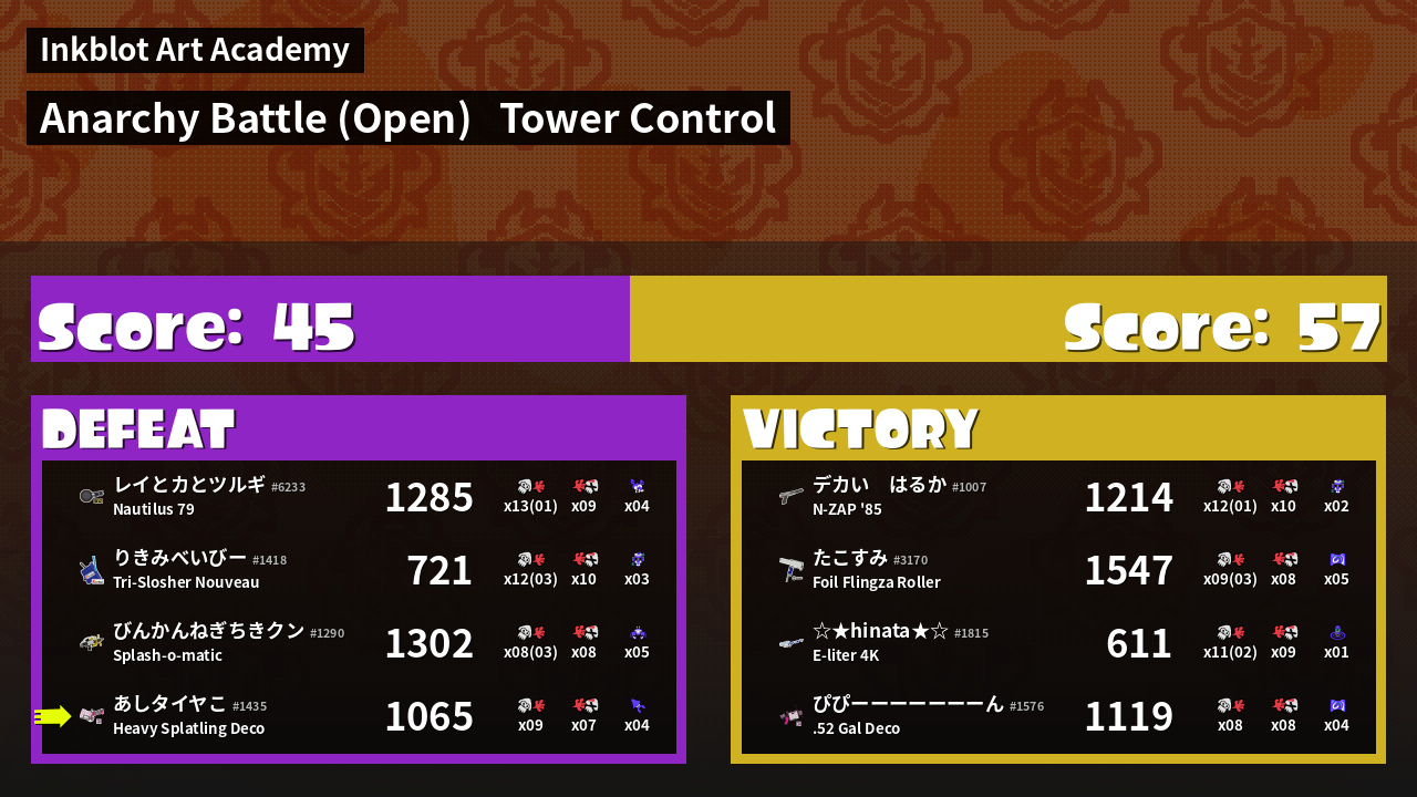 | Mode | Tower Control - Anarchy Battle (Open) | ||