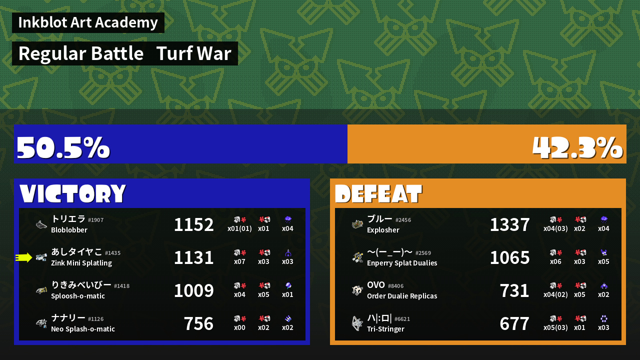 | Medals | #1 Overall Splatter #1 Popular Target #1 Enemy-Base Inker | ||