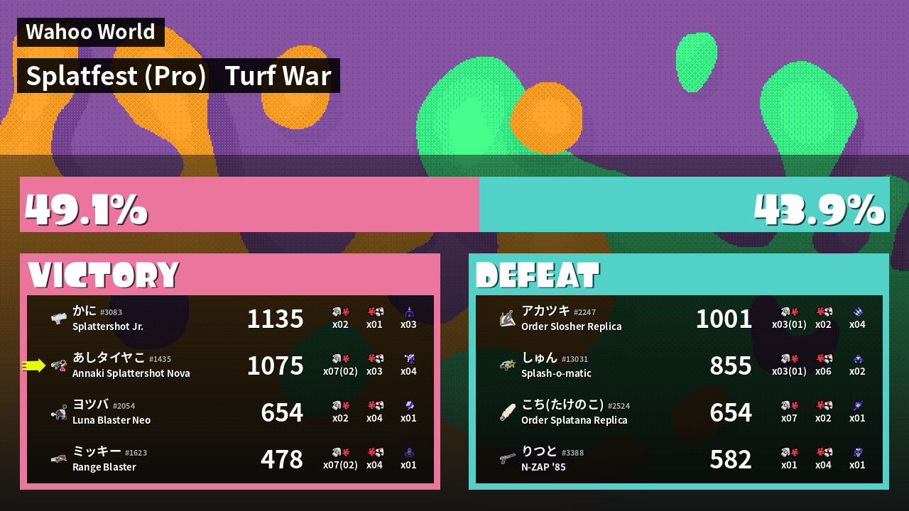 | Medals | #1 Overall Splatter #1 Enemy Splatter #1 Splat Assister | ||