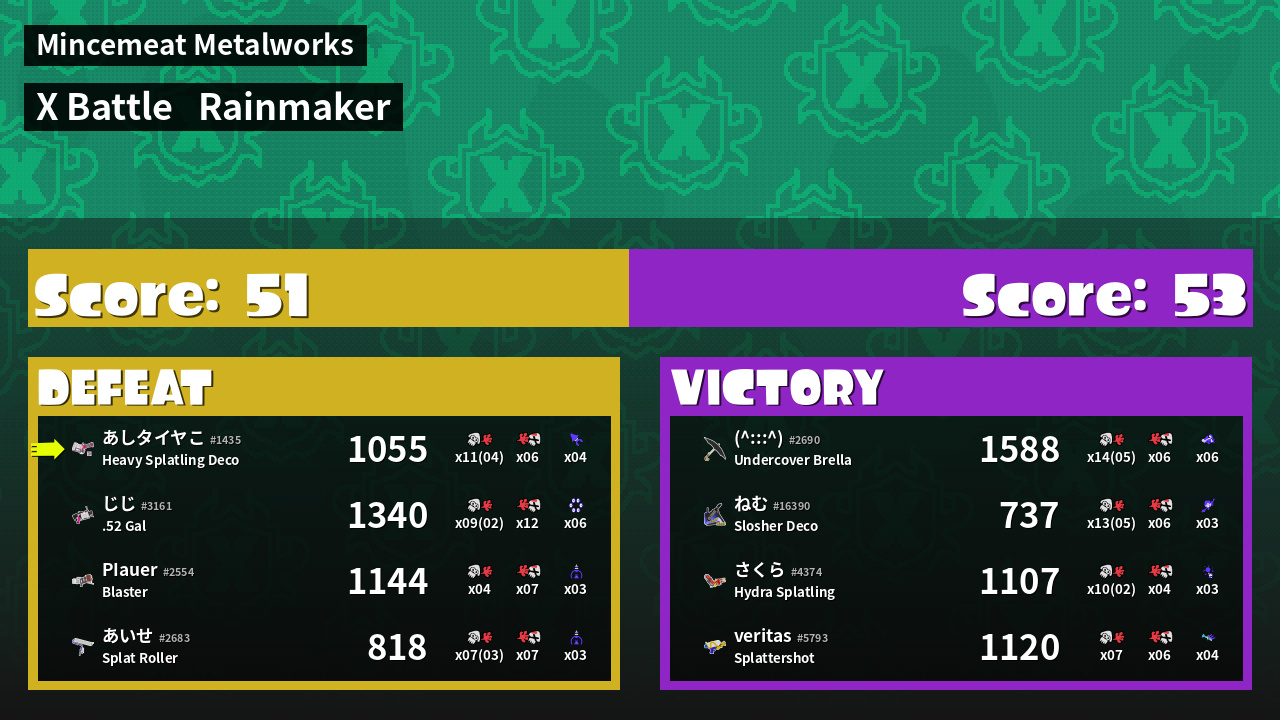 | Medals | #1 Overall Splatter #1 Super Jump Spot #1 Enemy Splatter | ||
