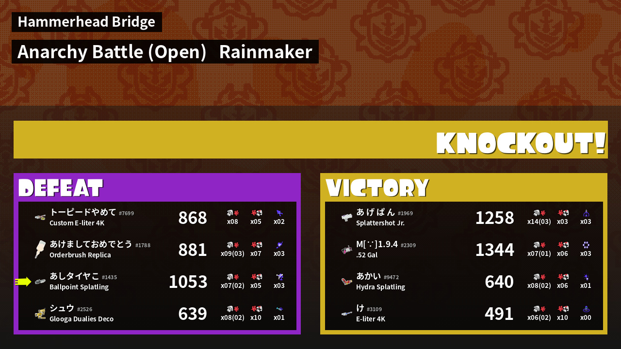 | Mode | Rainmaker - Anarchy Battle (Open) | ||