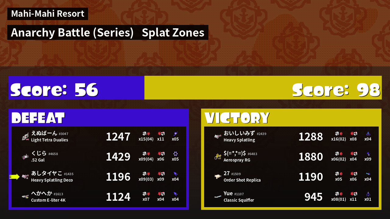 | Mode | Splat Zones - Anarchy Battle (Series) | ||