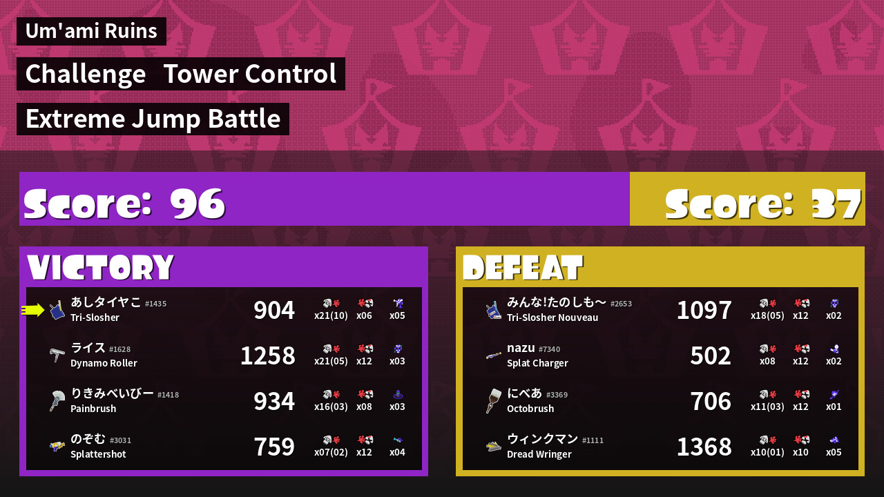 | Medals | #1 Overall Splatter Record-Score Setter #1 Super Jump Spot | ||