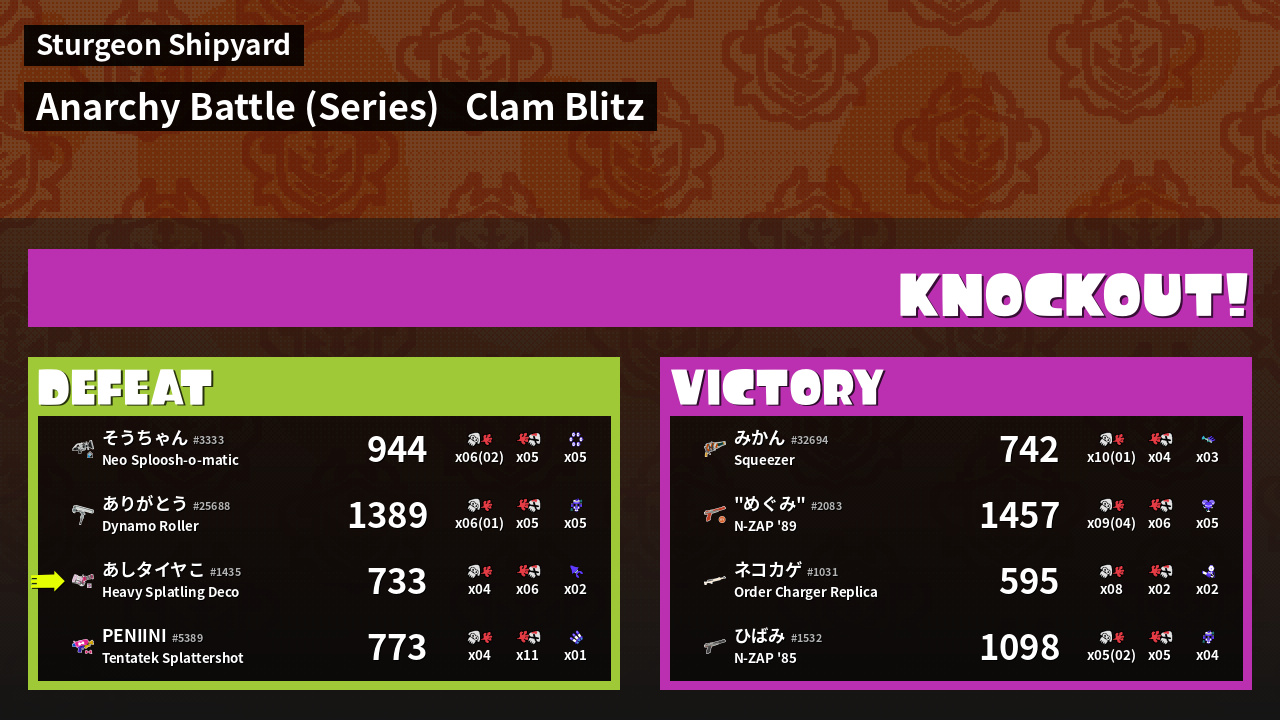 | Mode | Clam Blitz - Anarchy Battle (Series) | ||