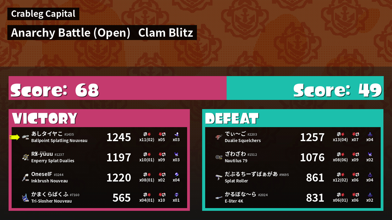 | Mode | Clam Blitz - Anarchy Battle (Open) | ||