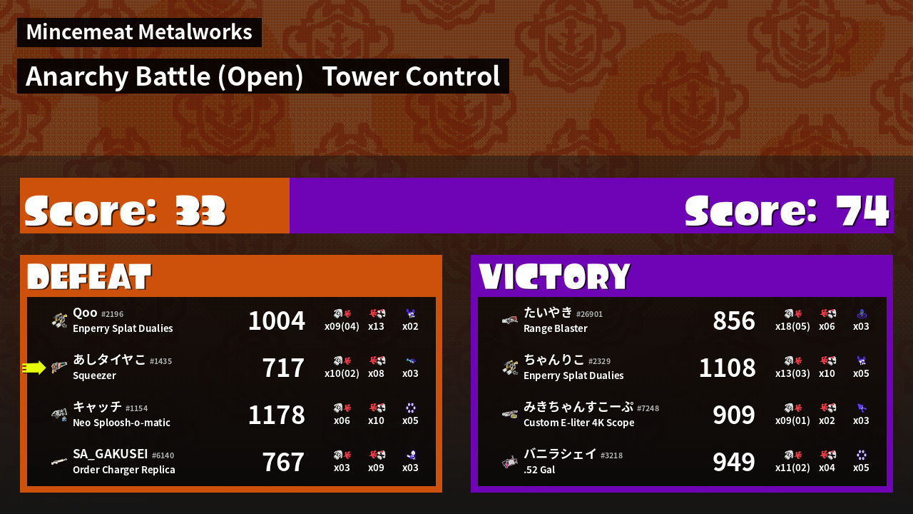 | Mode | Tower Control - Anarchy Battle (Open) | ||