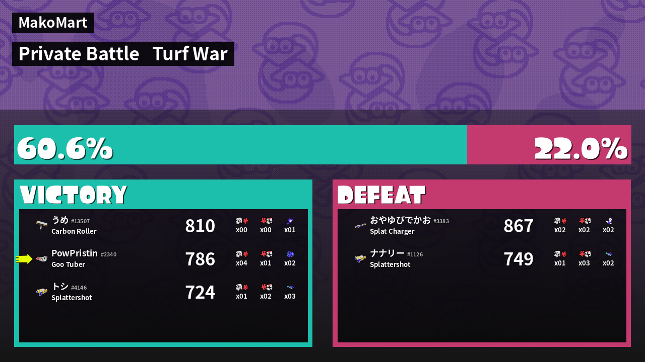 | Medals | #1 Overall Splatter #1 Popular Target #1 Home-Base Inker | ||