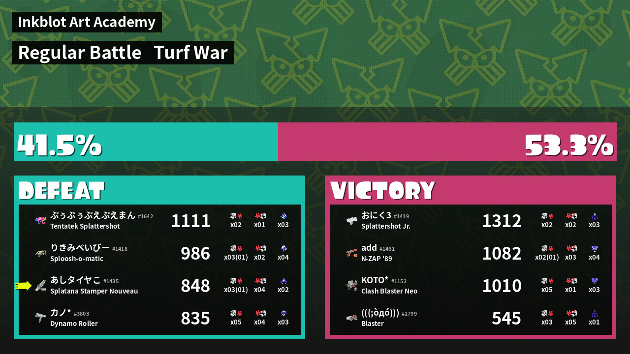 | Medals | #1 Splat Assister #2 Overall Splatter #2 Popular Target | ||