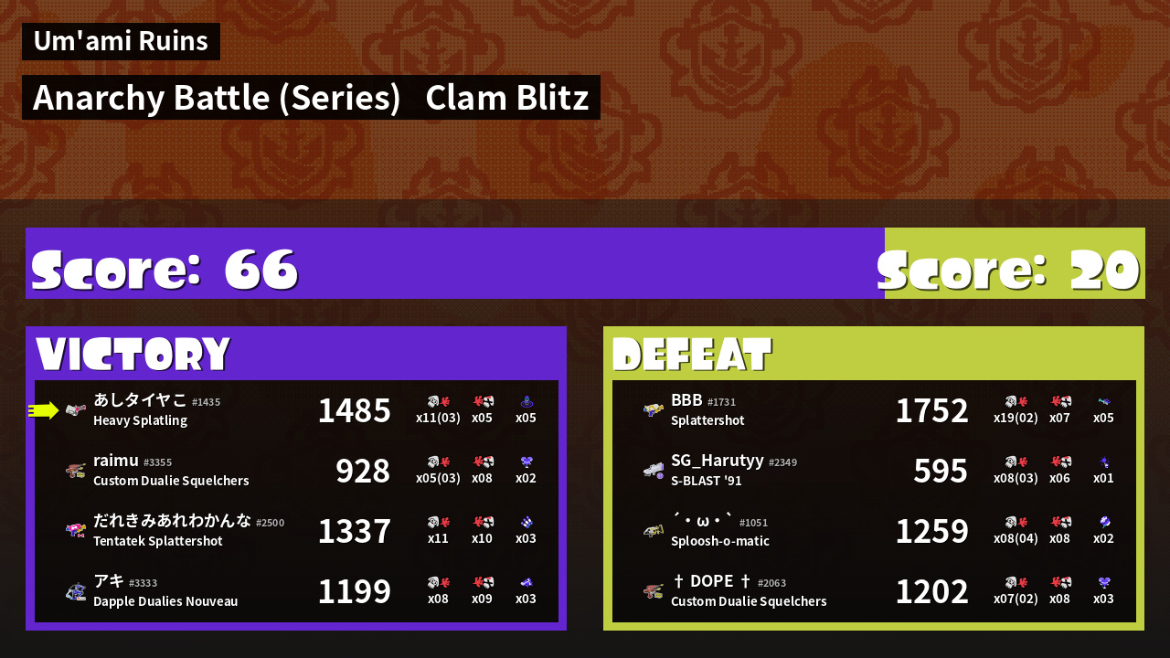 | Mode | Clam Blitz - Anarchy Battle (Series) | ||
