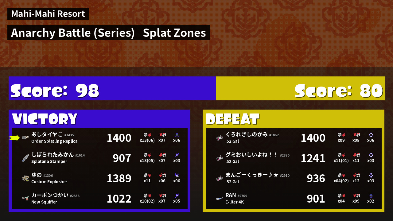 | Mode | Splat Zones - Anarchy Battle (Series) | ||