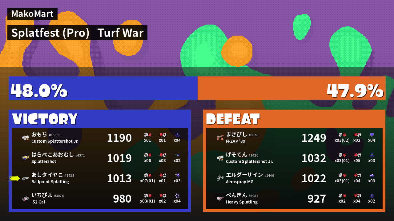 | Mode | Turf War - Splatfest (Pro) | ||