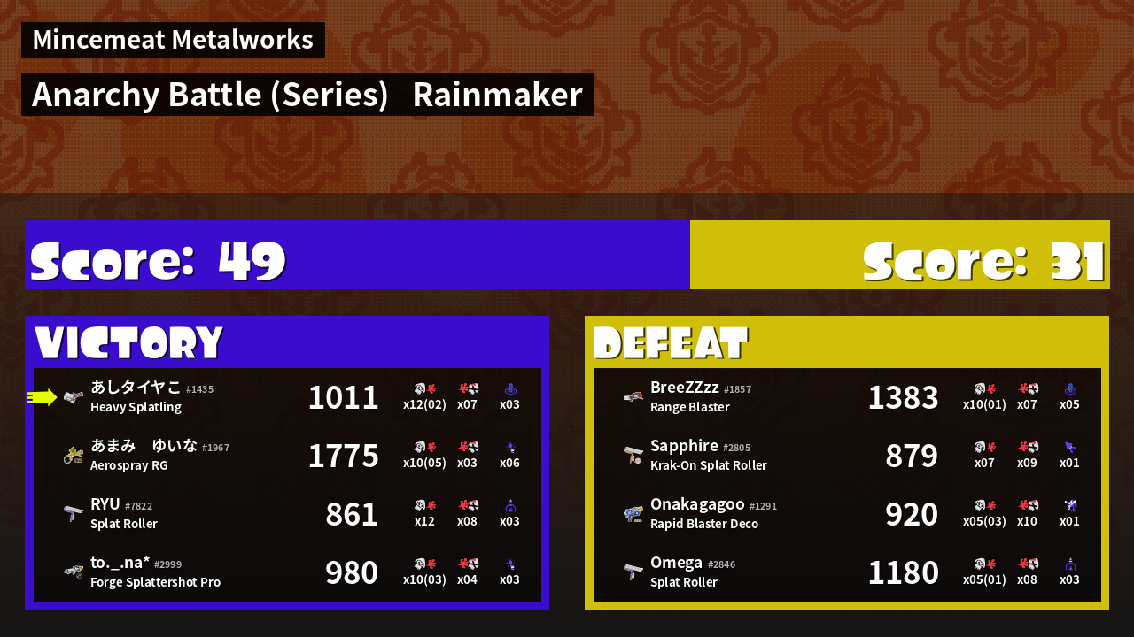 | Mode | Rainmaker - Anarchy Battle (Series) | ||