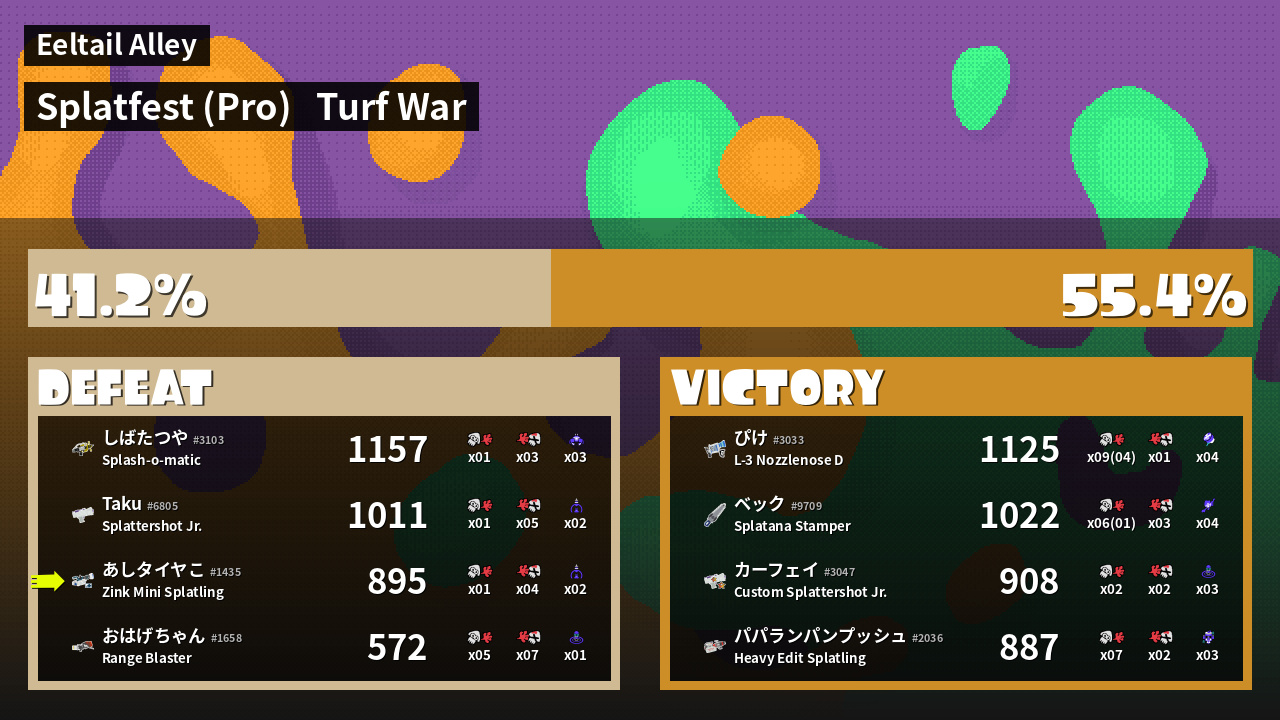 | Mode | Turf War - Splatfest (Pro) | ||