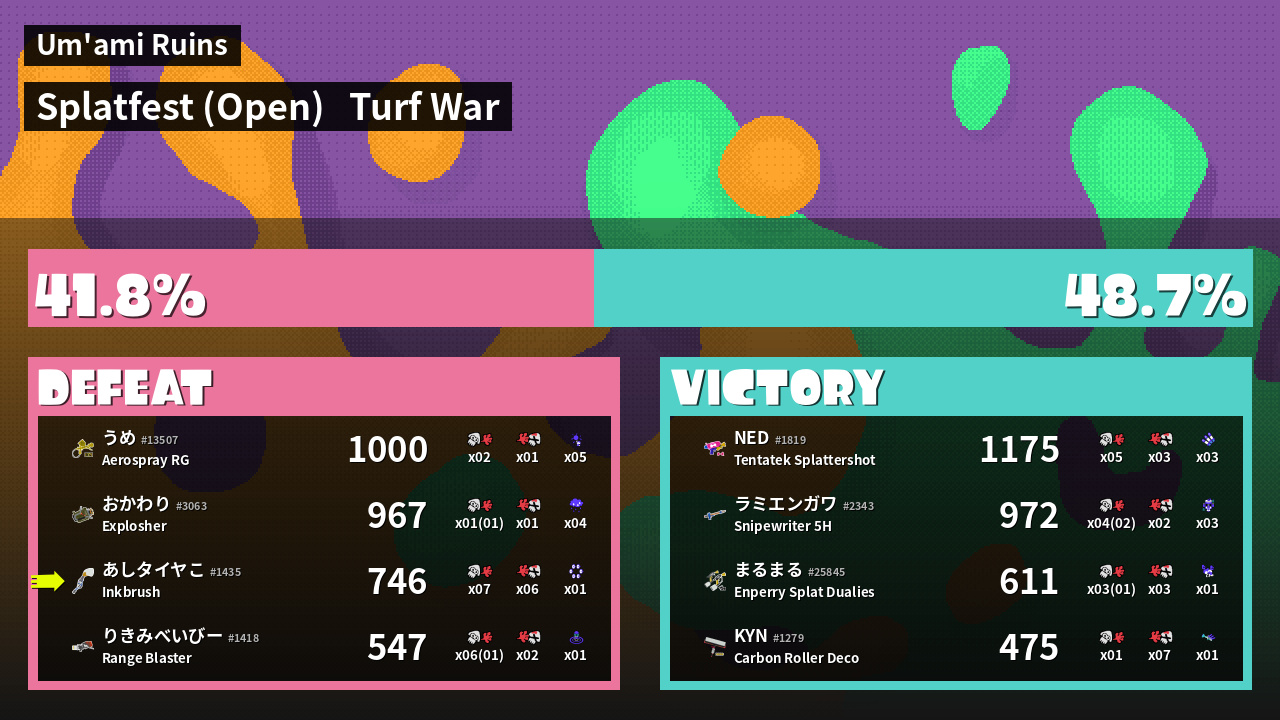 | Medals | #1 Overall Splatter #1 Enemy-Base Inker #1 Enemy Splatter | ||