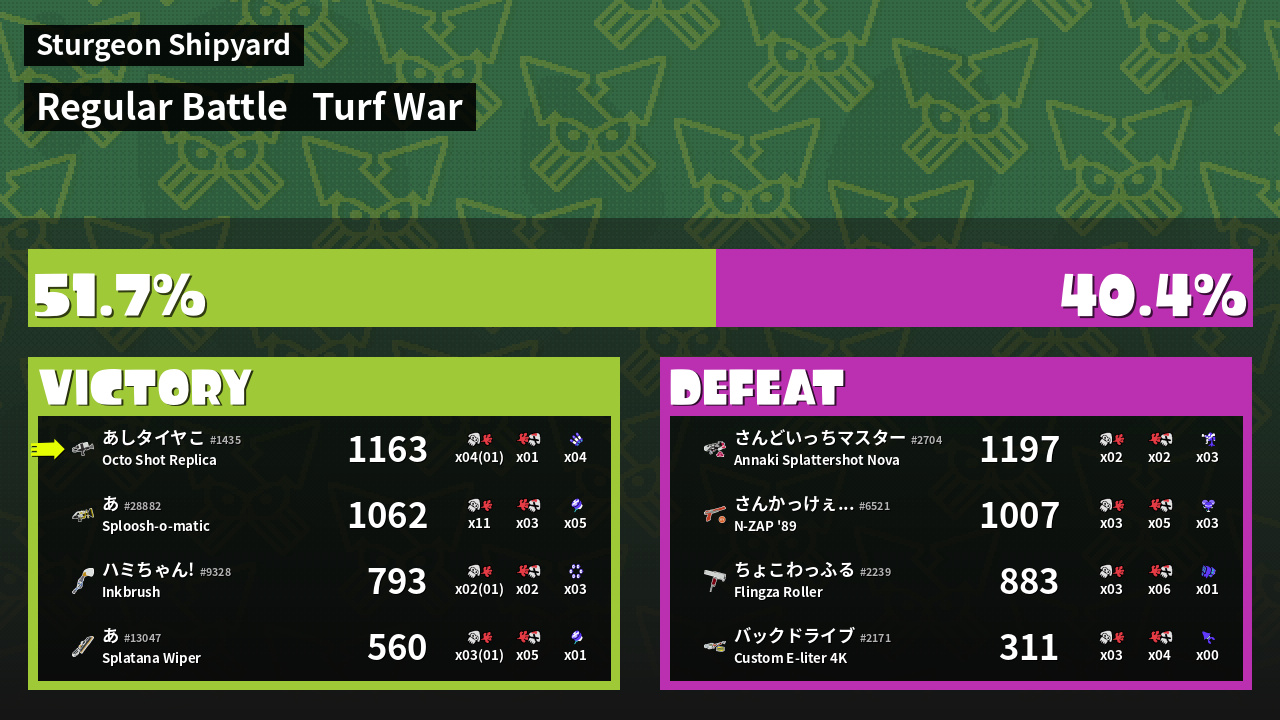 | Mode | Turf War - Regular Battle | ||