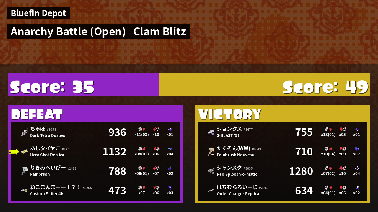 | Mode | Clam Blitz - Anarchy Battle (Open) | ||