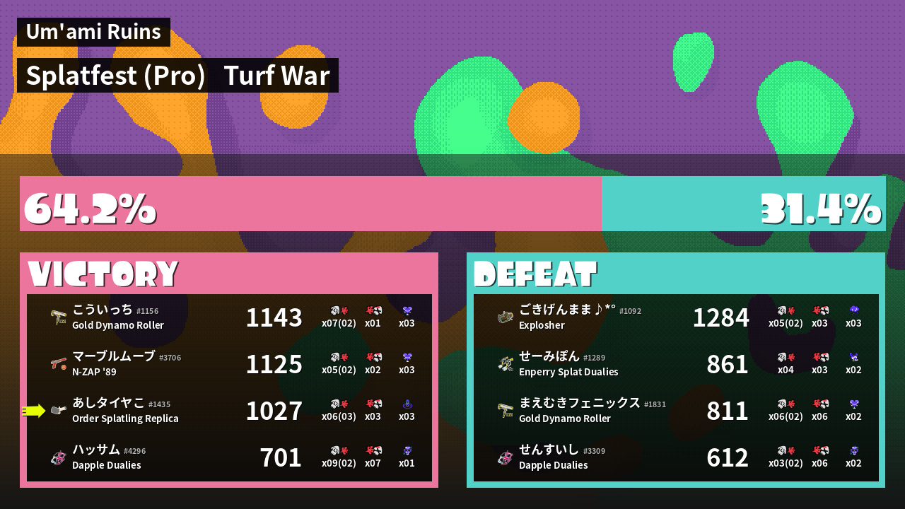 | Mode | Turf War - Splatfest (Pro) | ||