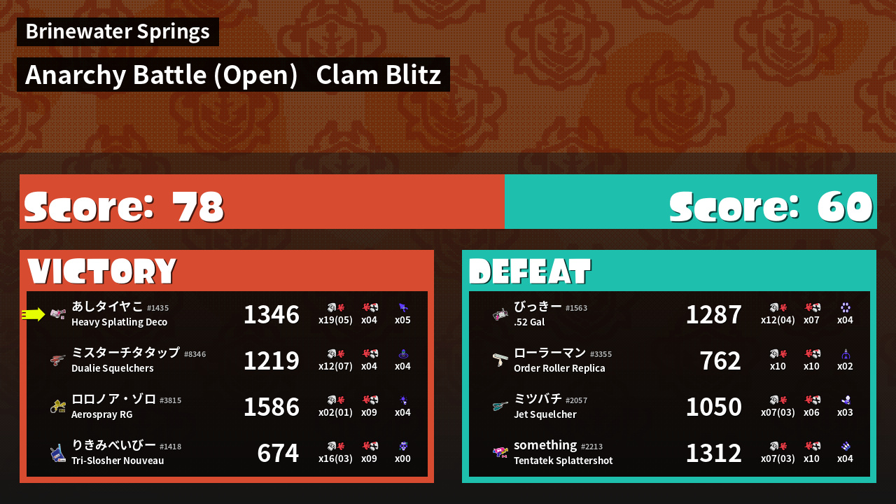 | Mode | Clam Blitz - Anarchy Battle (Open) | ||