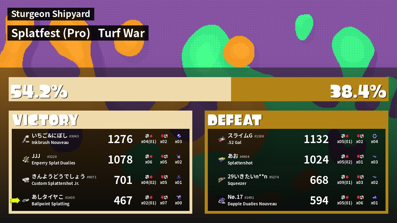 | Medals | #2 Enemy-Base Inker #2 Splat Assister | ||