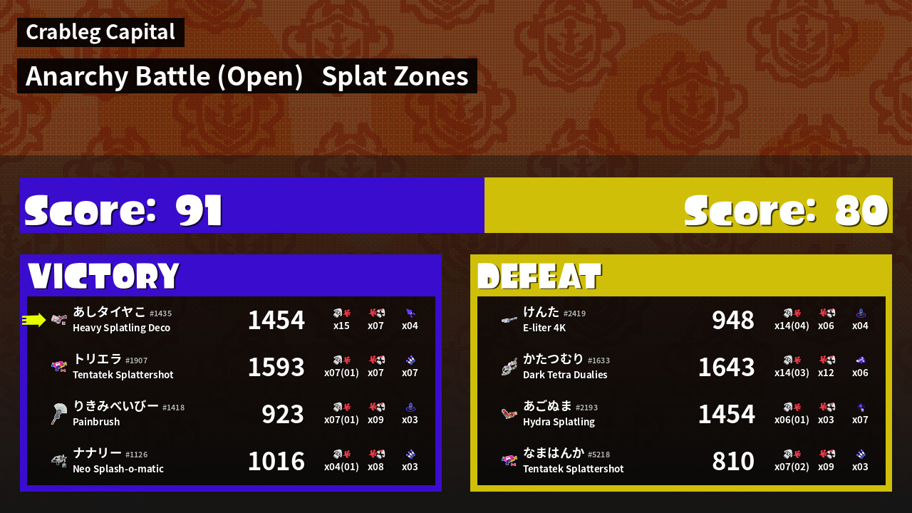 | Mode | Splat Zones - Anarchy Battle (Open) | ||