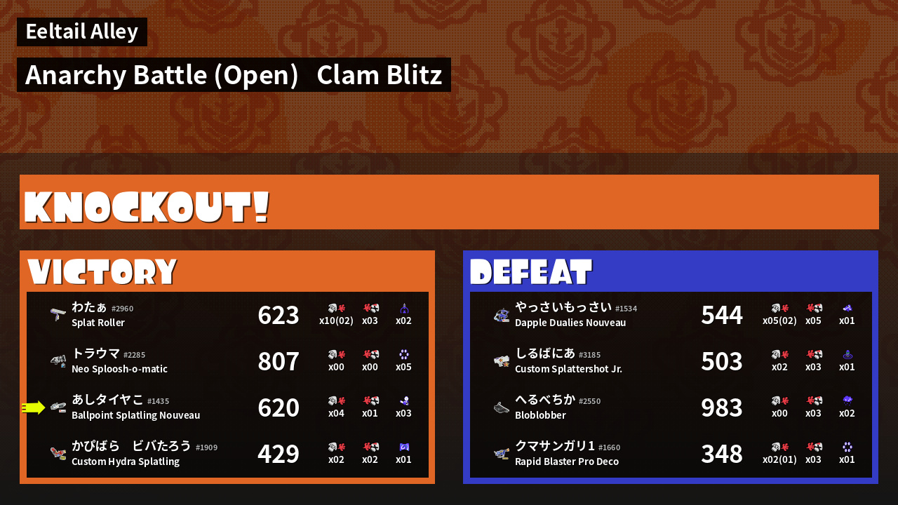 | Mode | Clam Blitz - Anarchy Battle (Open) | ||