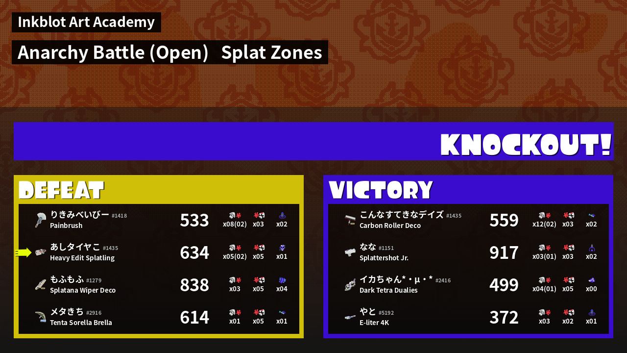 | Mode | Splat Zones - Anarchy Battle (Open) | ||