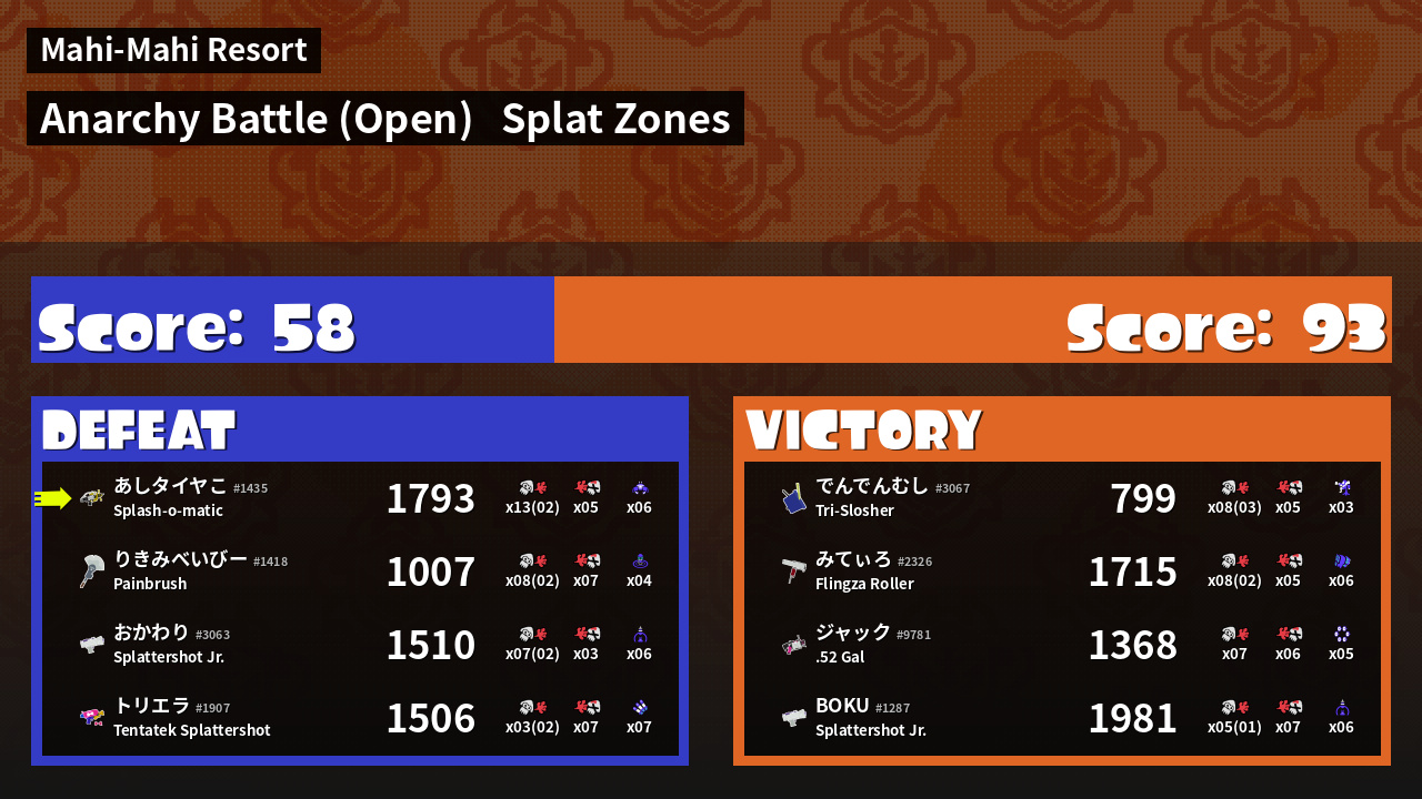 | Mode | Splat Zones - Anarchy Battle (Open) | ||