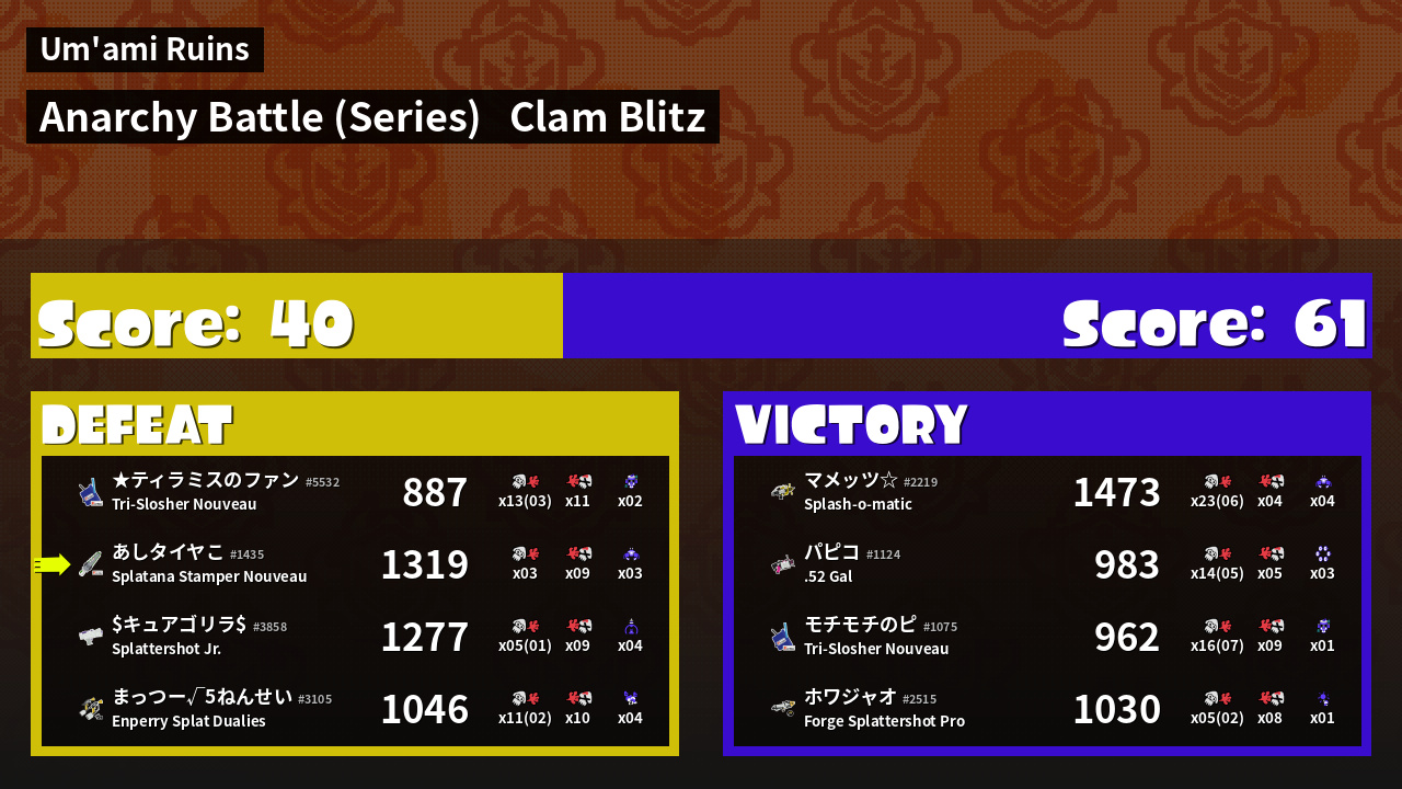 | Mode | Clam Blitz - Anarchy Battle (Series) | ||
