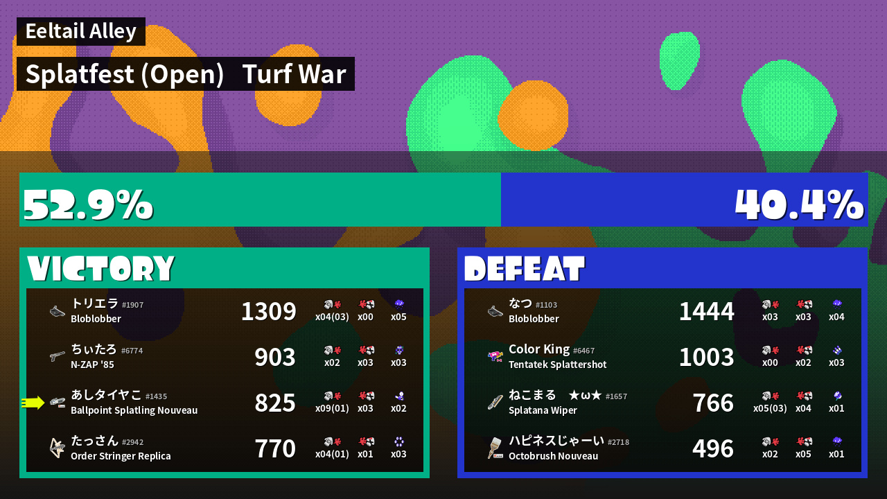 | Medals | #1 Overall Splatter #1 Popular Target #1 Enemy-Base Inker | ||