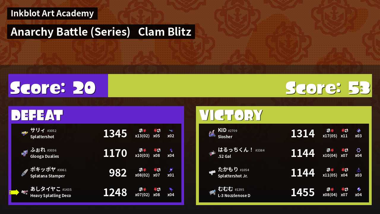 | Mode | Clam Blitz - Anarchy Battle (Series) | ||