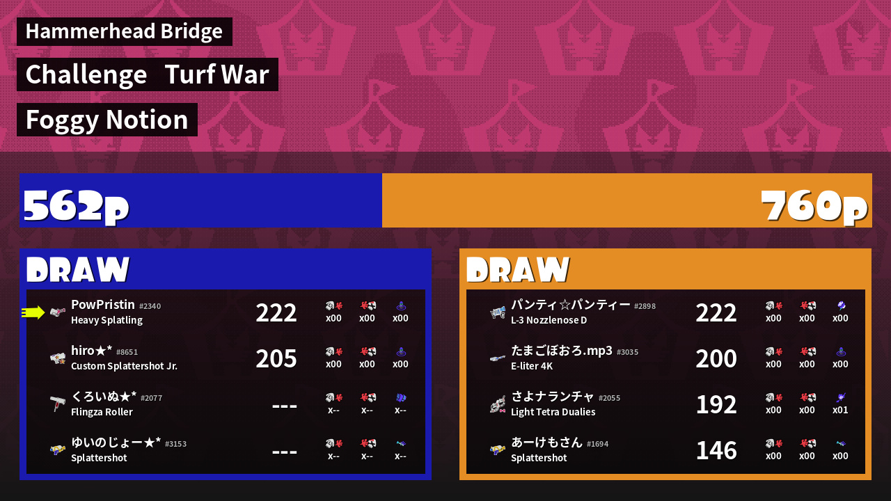 | Mode | Turf War - Challenge | ||