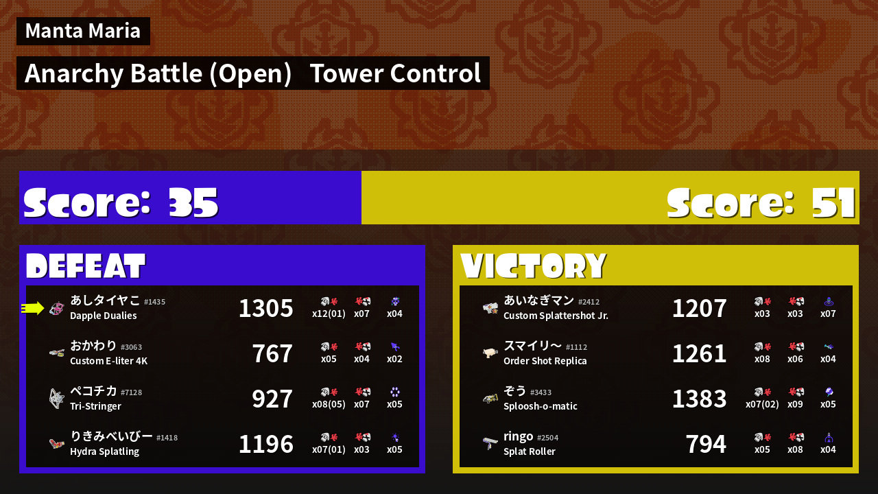 | Mode | Tower Control - Anarchy Battle (Open) | ||